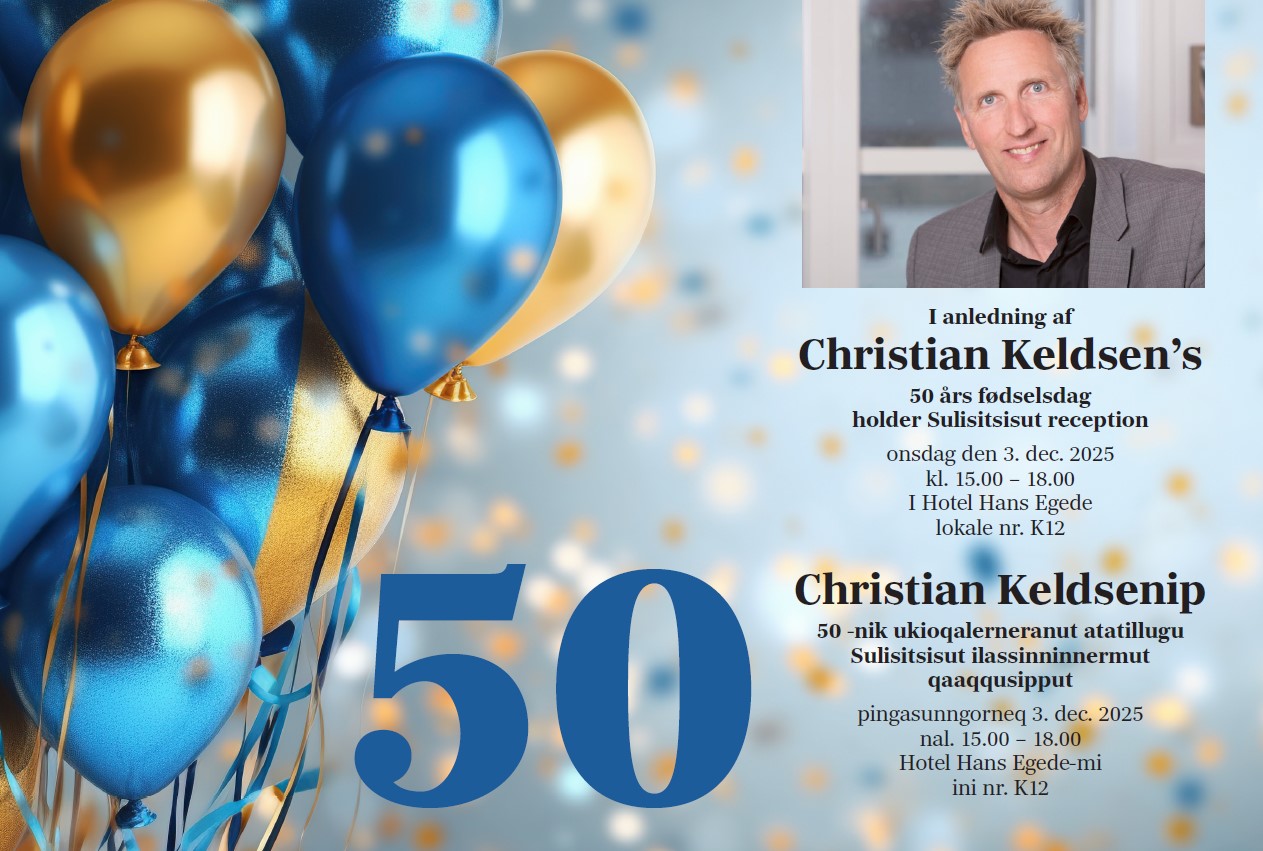 I anledning af Christian Keldsens 50-års fødselsdag inviterer Sulisitsisut alle til reception på